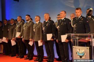 Po czym głos zabrali zaproszeni goście, którzy w swoich przemówieniach składali życzenia z okazji Święta Policji, a także wyrazili podziękowania dla policjantów pełniących służbę na terenie powiatu ostrowieckiego. Kolejno policjanci otrzymali od Starosty Powiatu Ostrowieckiego, Prezydenta Miasta Ostrowca Świętokrzyskiego oraz Burmistrzów i Wójtów samorządów miast i gmin powiatu ostrowieckiego wyróżnienia.