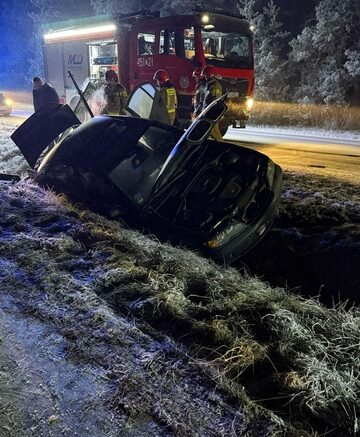 Wczoraj prószył śnieg, było ślisko. Samochód osobowy wpadł do rowu. Na miejsce wysłano drogówkę oraz straż pożarną. Foto poniżej!