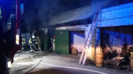 Po dotarciu na miejsce zdarzenia pierwszych zastępów straży pożarnej stwierdzono, że pali się budynek garażu o konstrukcji murowanej z drewnianą więźbą dachową kryty blacho-dachówką, w…